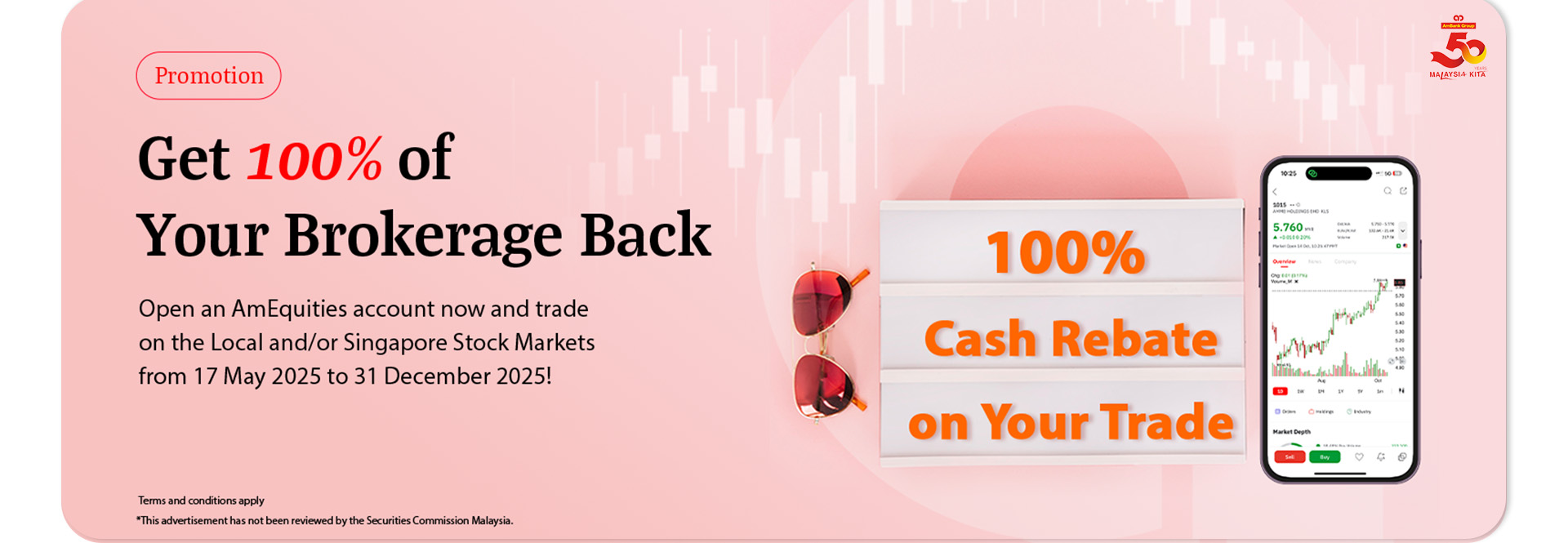 Open an eDirect Cash or Collateralised Trading account and trade on stocks listed on Bursa Malaysia Stock Exchange and/or Singapore Stock Exchange from 15 May to 31 December 2025. You will receive a 100% cash rebate on your brokerage fees.First-come, first-served basis. Register now to participate.